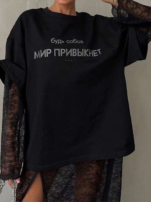Übergroßes Langarm-T-Shirt mit Schriftzug-Print