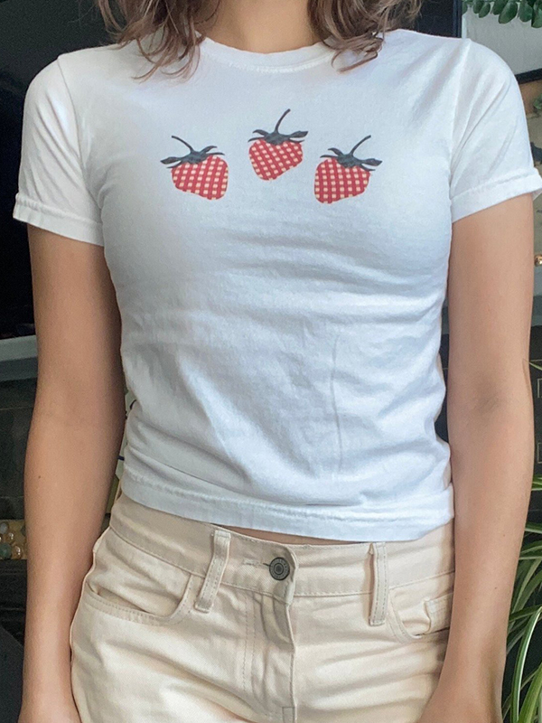 Kurzärmliges T-Shirt mit Erdbeer-Print
