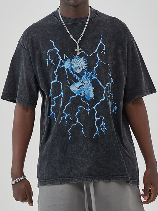 Übergroßes, kurzärmliges T-Shirt mit Blitz-Print für Herren