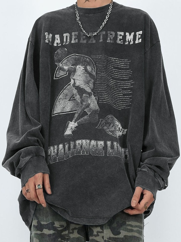Langärmliges Herren-T-Shirt mit Distressed-Print