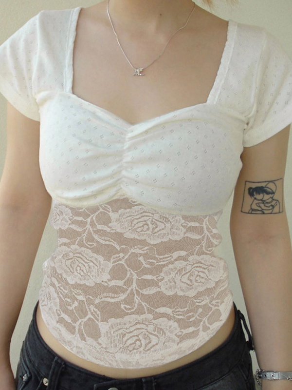 Schmales Kurzarm-T-Shirt aus Spitze