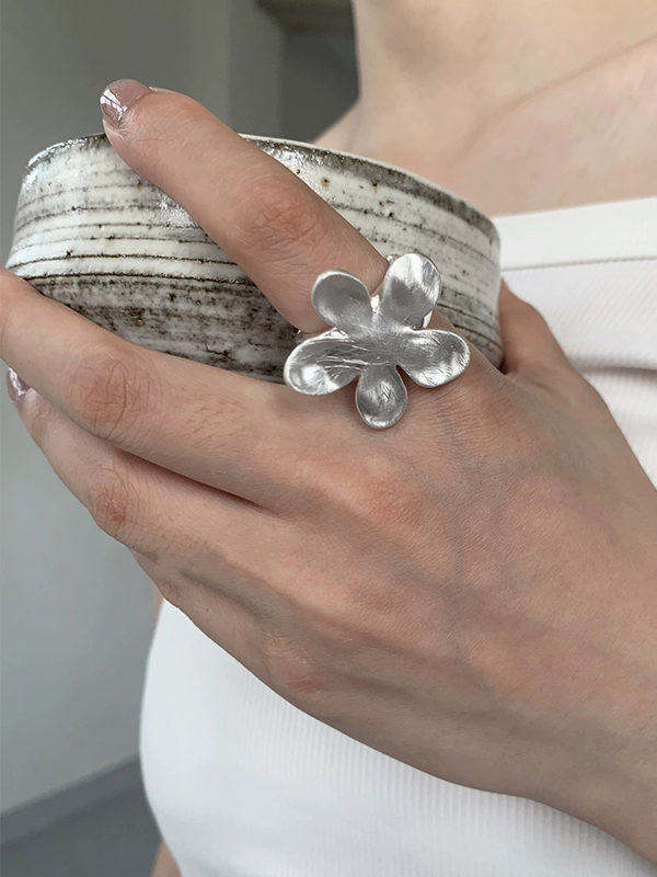 1 Stück silberner Manschettenring mit Distressed-Blume