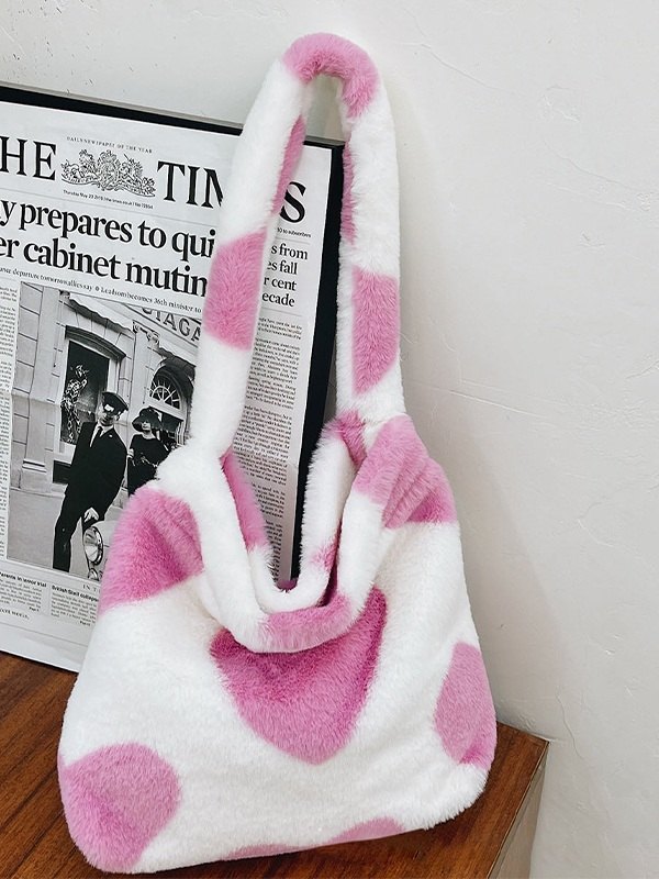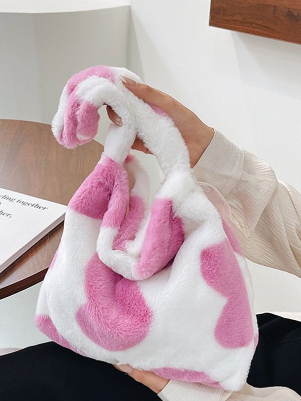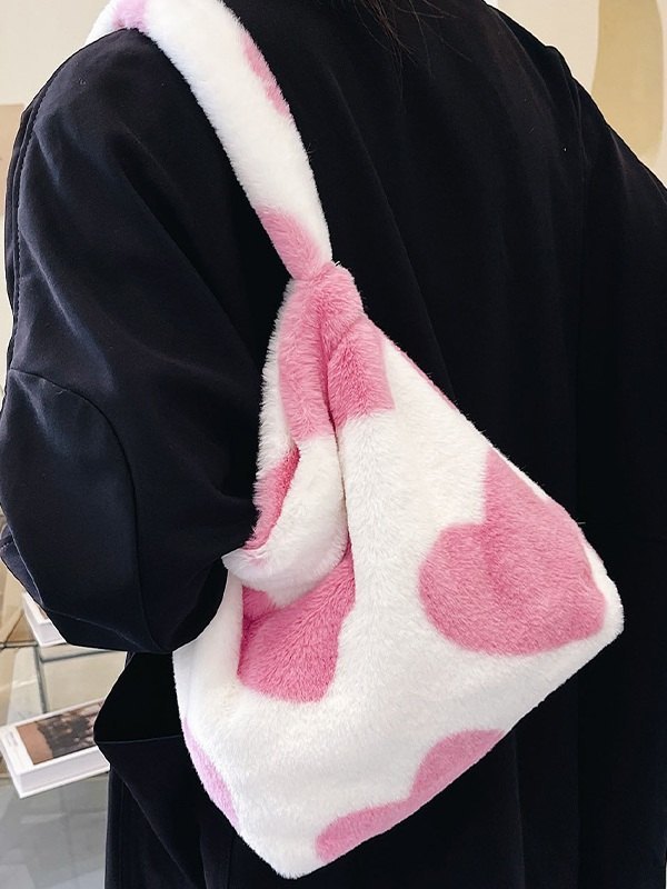 Fuzzy-Schultertasche mit Herzmuster