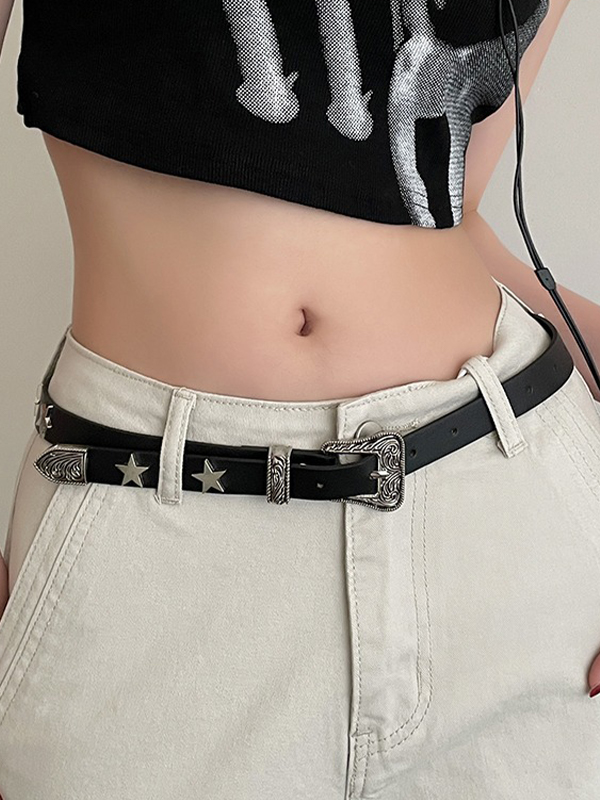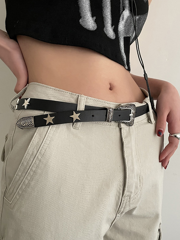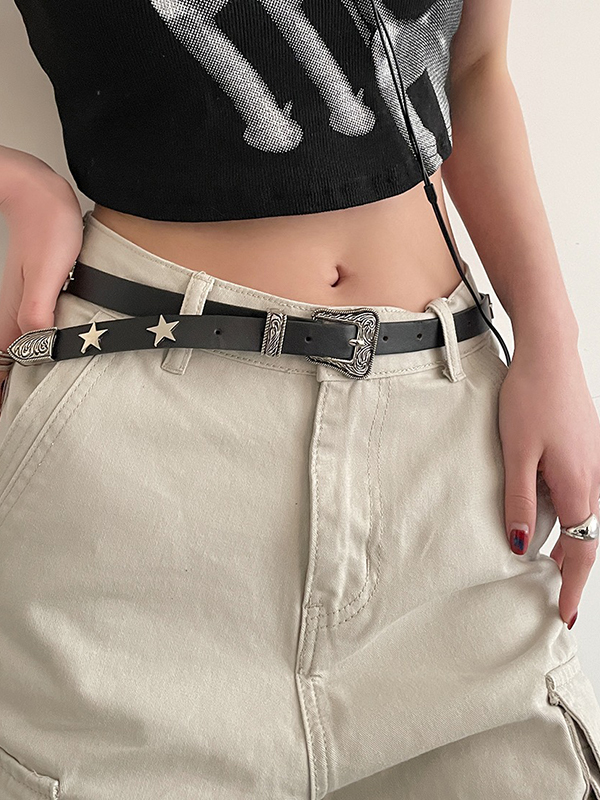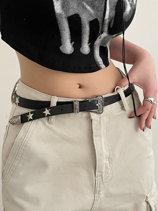 Gürtel mit gravierter Design-Schnalle aus Metall mit Sterndekor