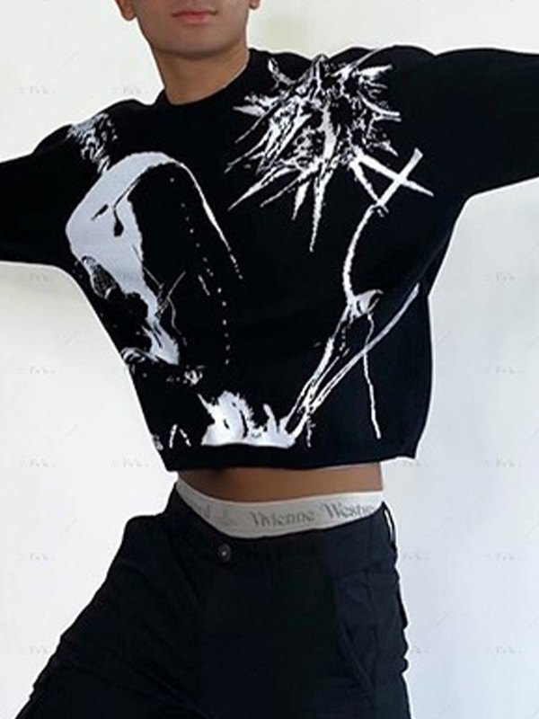 Beschreibung: Diese schicken Pullover mit Punk-Vibe für Herren haben eine entspannte Silhouette, ein Jacquard-Design mit Anime-Mustern und fallende lange Ärmel.