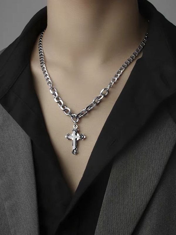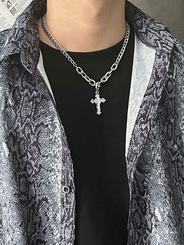 Herren Strass Kreuz Anhänger Kette Halskette