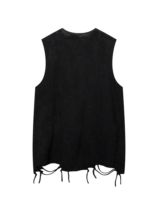 Herren-Weste mit Hip-Pop-Print, zerrissen und Halskette