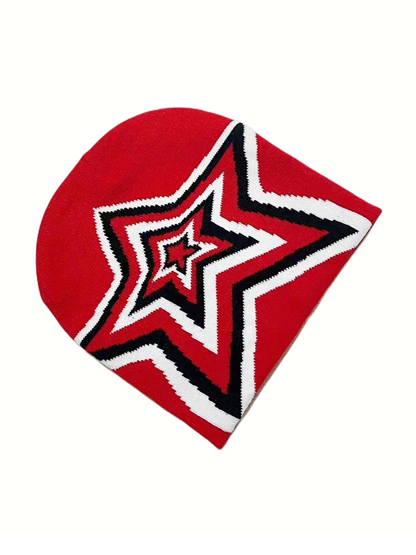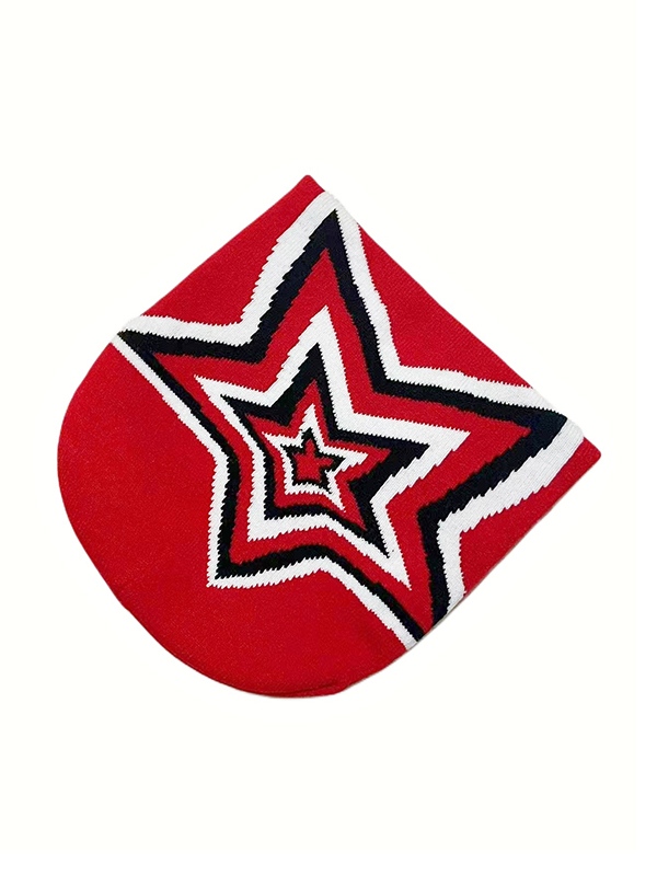 Kontrastfarbene Stern-Jacquard-Mütze