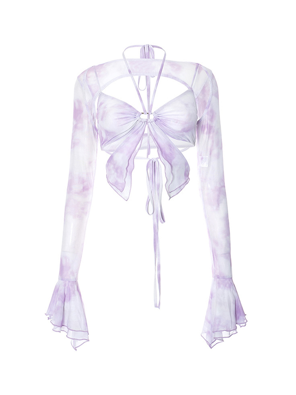 Schreibe die erste Bewertung für „Langärmliges T-Shirt mit Rüschenärmeln und Schmetterlings-Print“