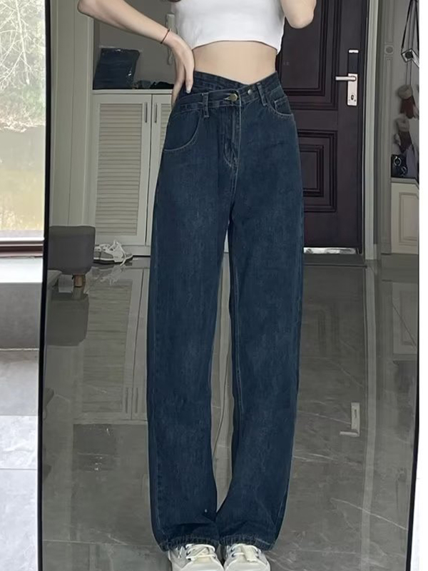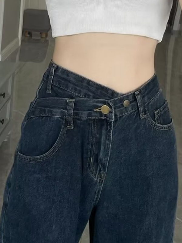 Vielseitige, gerade Boyfriendjeans mit Crossover-Taille