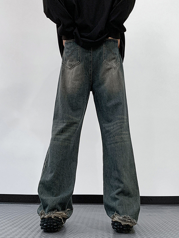 Zerrissene, lose Herrenjeans im Distressed-Vintage-Stil in Blau